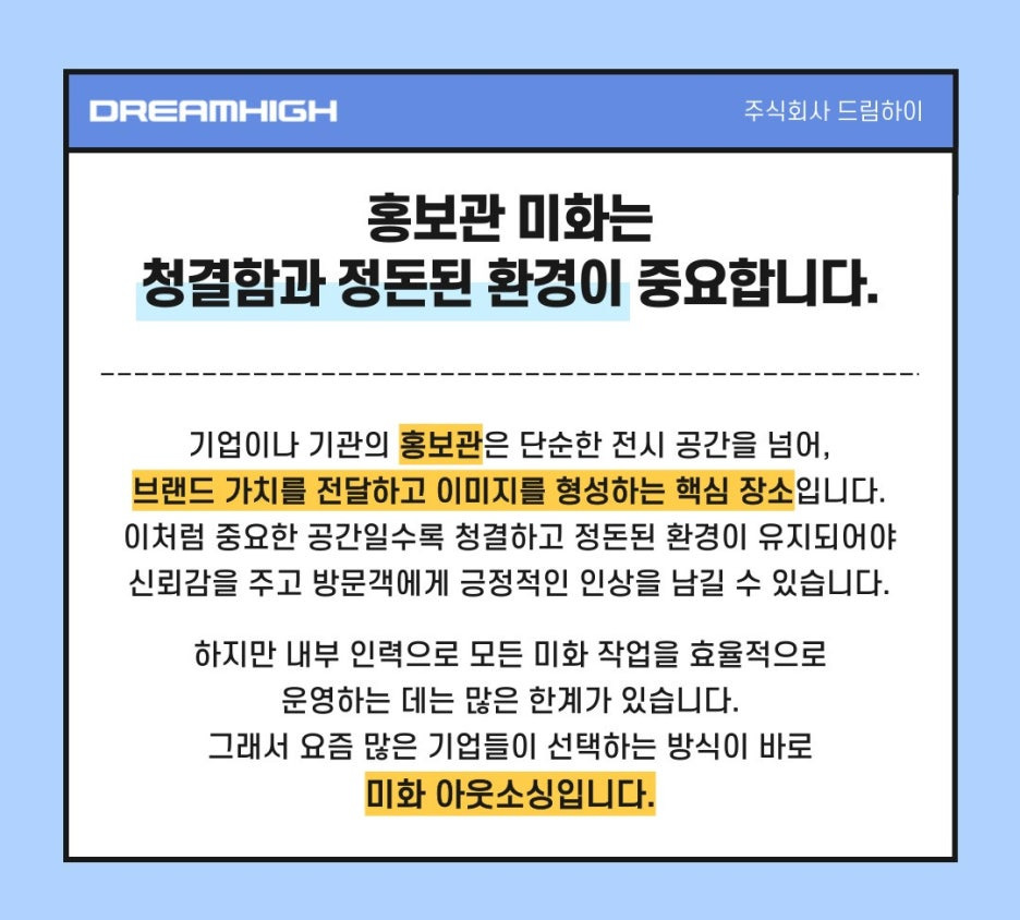 → 홍보관 미화는 단순한 청소가 아닙니다.