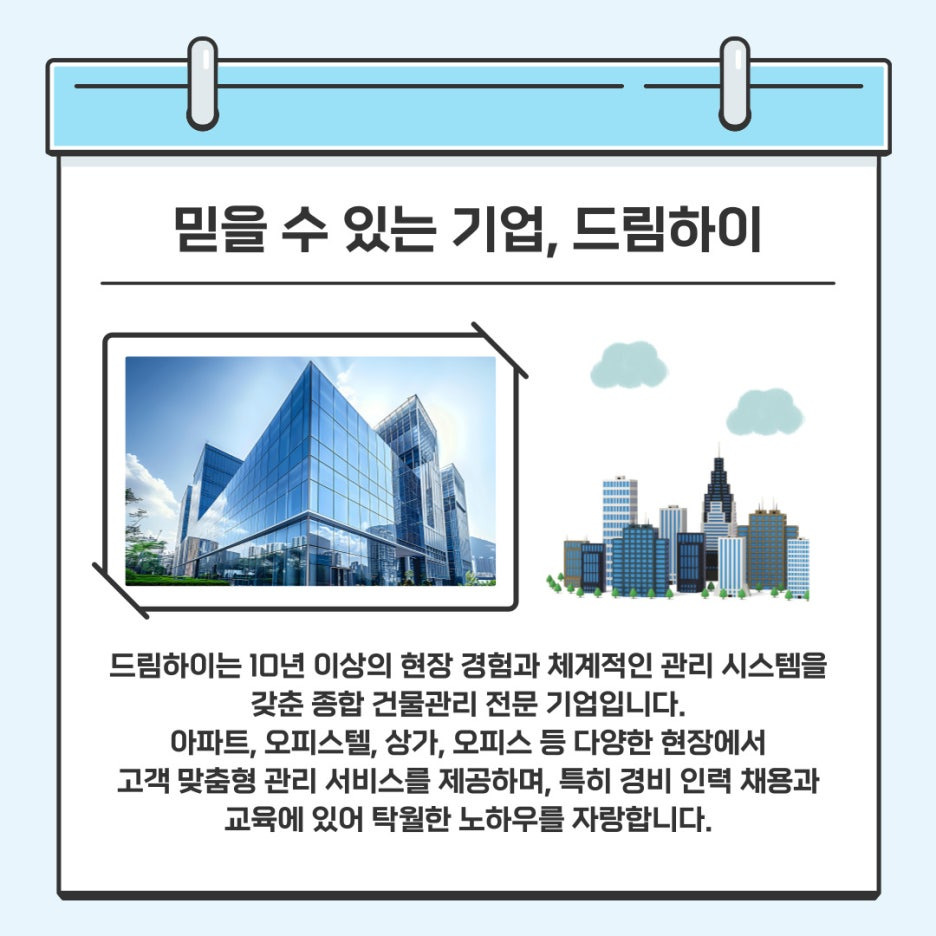 저희 드림하이는 10년 이상의 건물관리 노하우를 보유한 전문업체입니다!