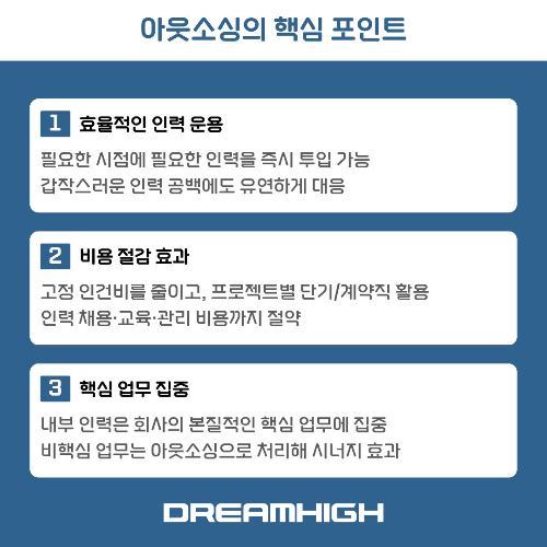 아웃소싱은 “시간·비용 절감 + 전문성 확보 + 기업 경쟁력 강화”를