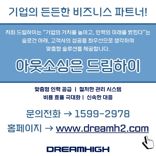 안녕하세요! 의정부 아웃소싱 전문업체 드림하이입니다.
