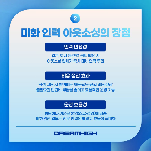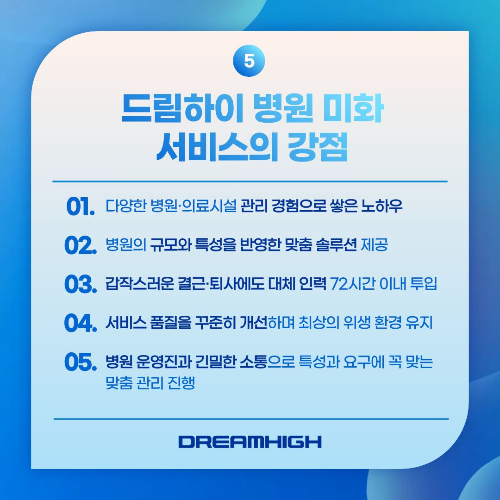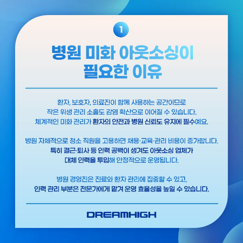 서울 도봉구 병원 미화 인력 아웃소싱 전문 관리 서비스를 소개해드릴 드림하이입니다.