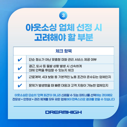 아웃소싱은 단순히 ‘인력 파견’이 아니라 신뢰할 수 있는 파트너를 선택하는 것이에요
