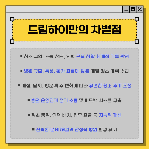 ◾ 병원 환경에 맞춰 교육받은 전문 청소 인력이 투입됩니다.