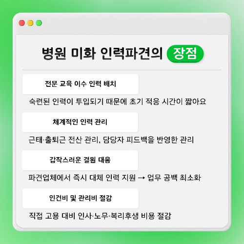 👉 파견업체에서 즉시 대체 인력 지원 → 업무 공백 최소화