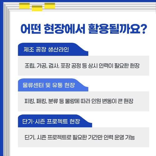 조립, 가공, 검사, 포장 공정 등 상시 인력이 필요한 현장
