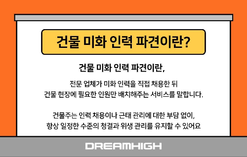 안녕하세요! 건물 관리 전문업체 드림하이입니다.
